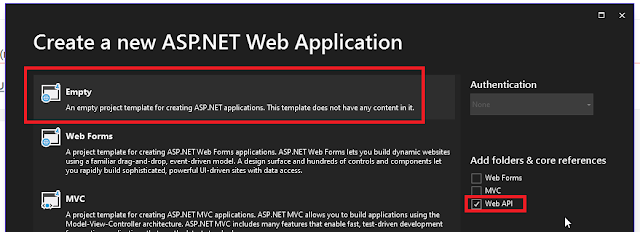 Now we have an empty API, with 1 file containing basic routing ("WebApiConfig.cs") and its 1 Method is called in the "Global.asax.cs".
